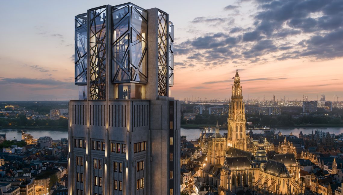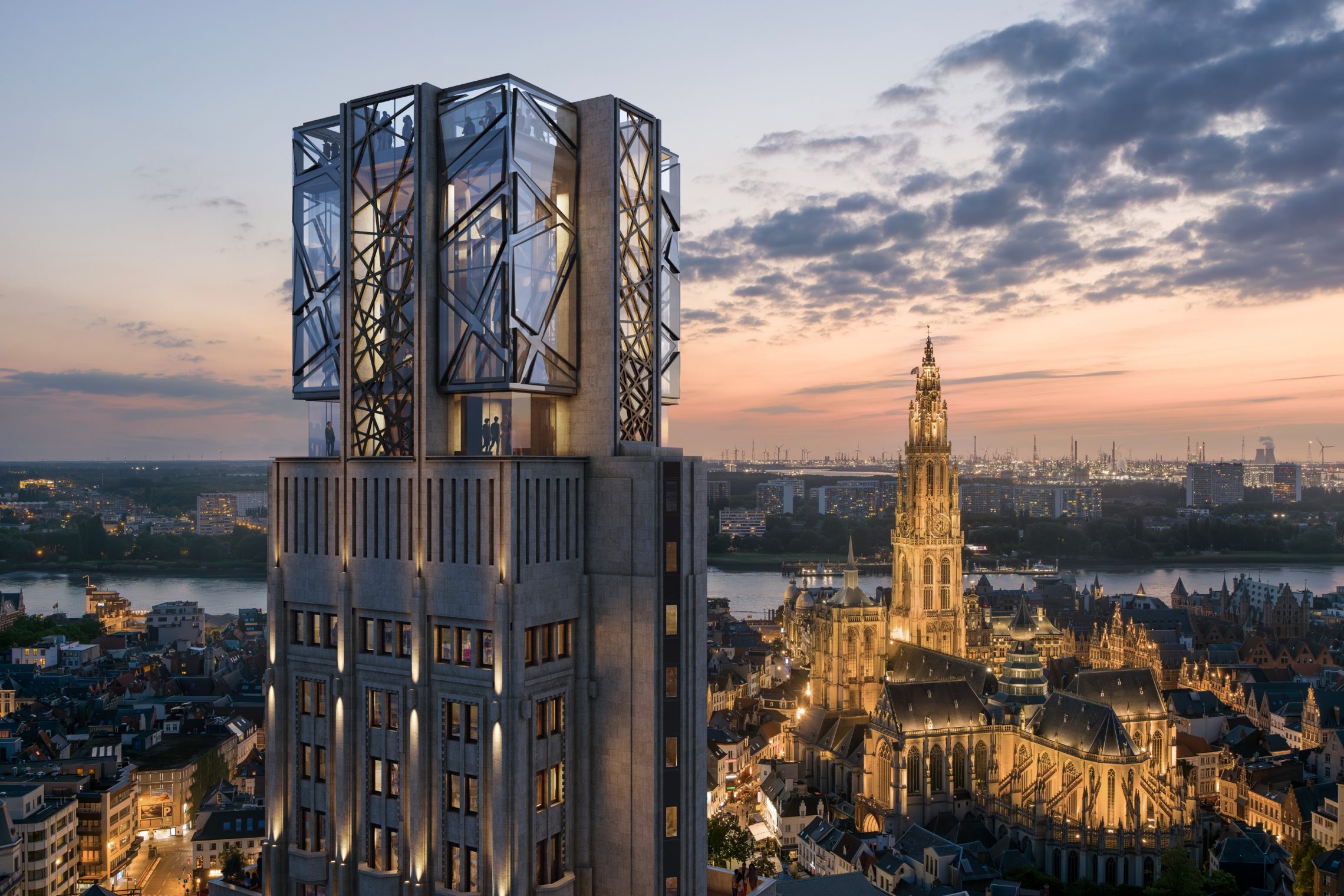 Inspired by the building’s layered history—from its Art Deco origins to the Brutalist additions of the 1970s—the design pays homage to the past while boldly defining a new era for one of Europe’s earliest skyscrapers. Including:a glass-and-steel crown offering observation decks with sweeping views of Antwerp;a public sculpture garden and restaurant overlooking the River Scheldt.; and a light-filled atrium and “Tower Living Room” for exhibitions and events. Working closely with the Flemish Heritage Agency and the City of Antwerp, the design preserves the building’s historic structure while opening it to the public for the first time.