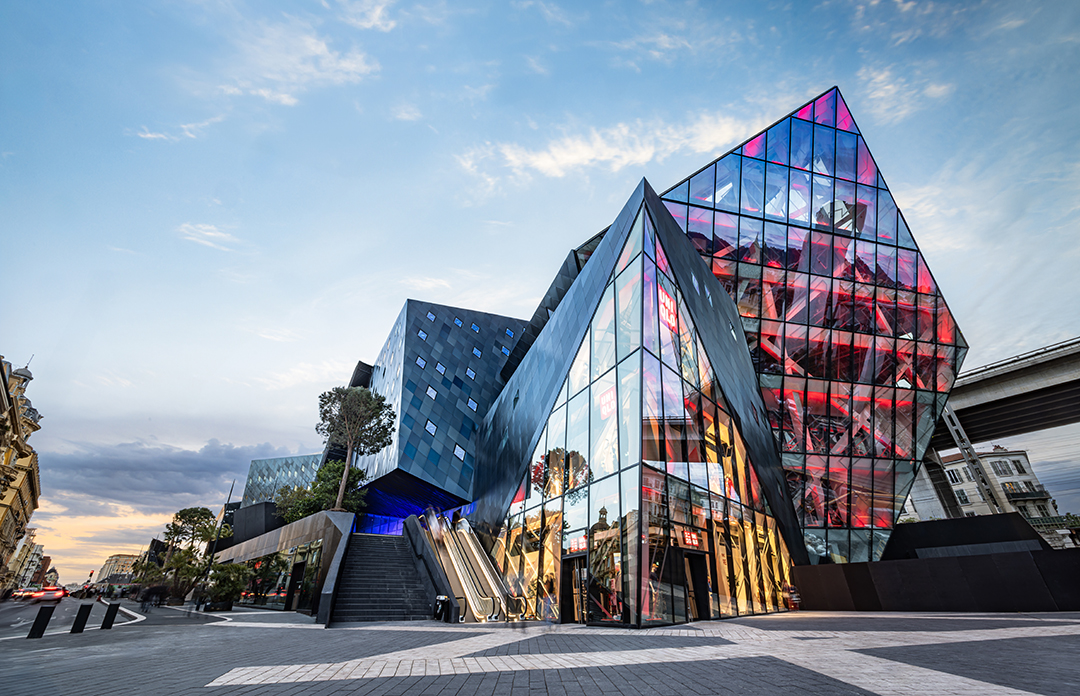 Architecturally, Gare Thiers-Est is inspired by the angular, mineral forms of azurite, a stone native to the region. The building rises nearly 40 meters in crystalline peaks, with a façade clad in reflective metal panels and patterned glass—each facet catching and refracting the light, sky, and surrounding cityscape. This shimmering skin gives the structure a jewel-like presence, transforming it into a dynamic sculptural form that shifts with the time of day and seasons.